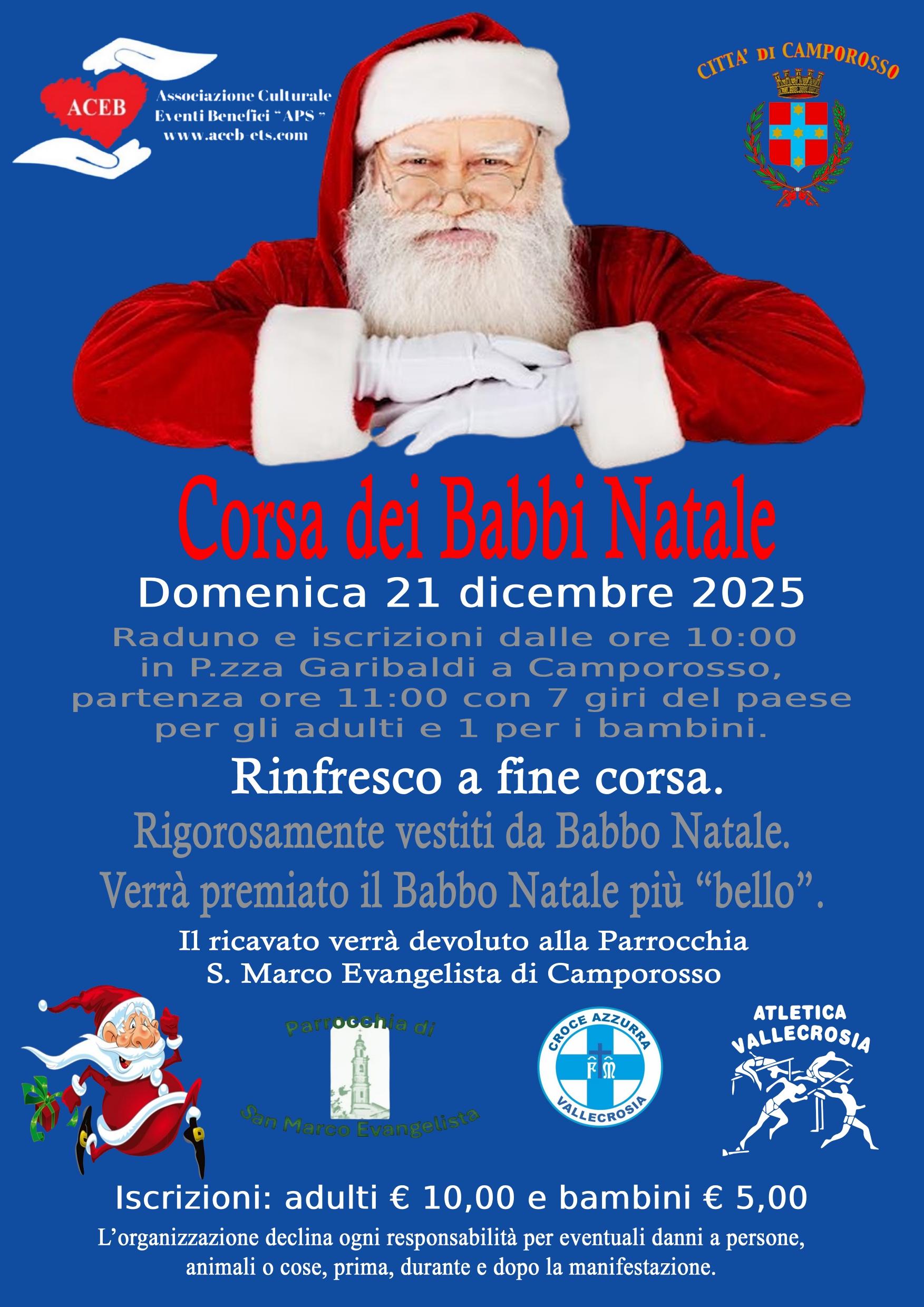 Cos'è Domenica 21 dicembre alle ore 10.00 in Piazza Garibaldi a Camporosso raduno ed iscrizione della “Corsa dei Babbi Natale” – a cura dell’Ass. ACEB – Evento patrocinato dal Comune di Camporosso